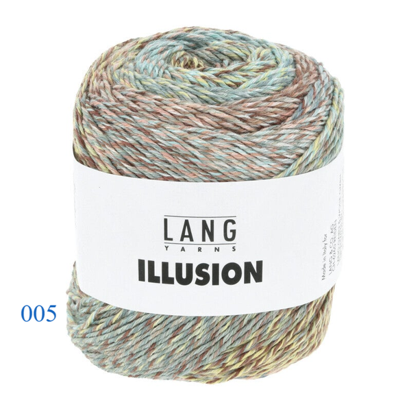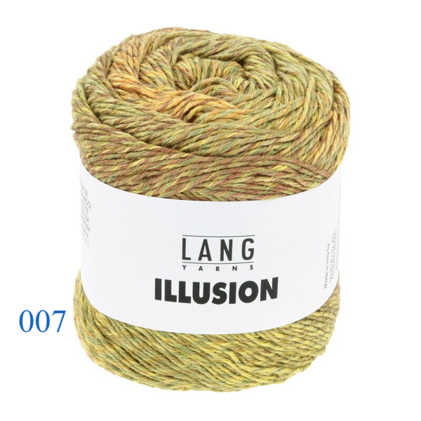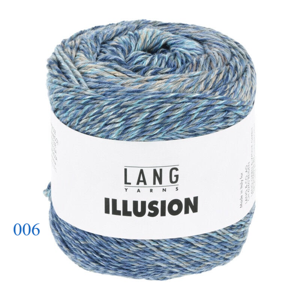 ILLUSION, een mix van katoen en bamboeviscose, valt op door zijn unieke kleureffect. Elke streng wordt apart bedrukt met dezelfde kleurherhaling, voordat ze in elkaar worden gedraaid, wat steeds wisselende kleurcombinaties door het hele garen heen oplevert. Wanneer gebreid of gehaakt, creëert deze moulinéconstructie een stof met een gelijkmatige kleurverdeling en een glinsterend, bijna hypnotiserend effect, vergelijkbaar met een luchtspiegeling.