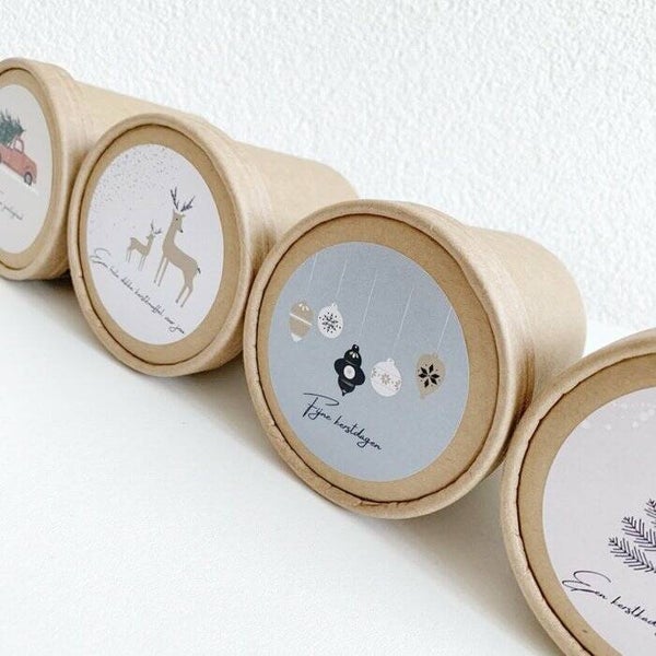 - Voorzien van sticker op de kaars en op de geschenk verpakking