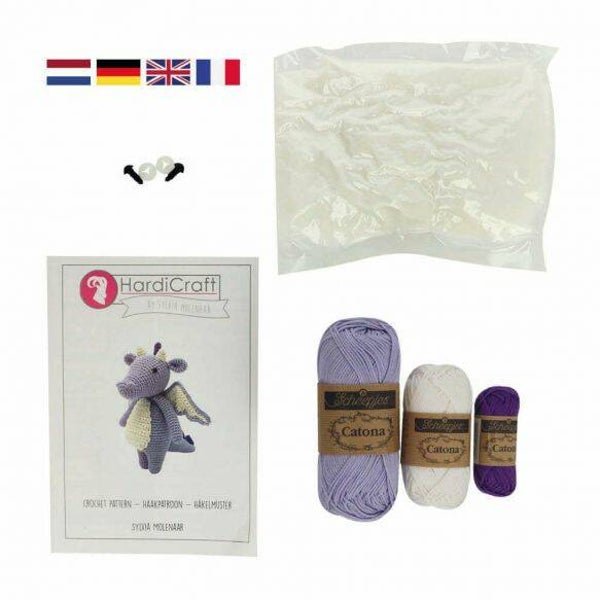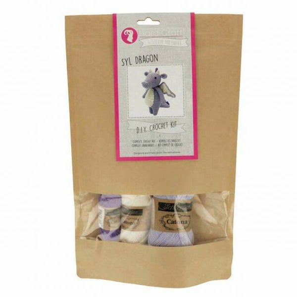 Draken hoeven echt niet allemaal woest en eng te zijn. Neem nu draakje Syl – ze is ontzettend lief, super schattig en bovendien heerlijk zacht. Haak nu zelf zo’n mythisch wezen met dit haakpakket van HardiCraft. Leuk om cadeau te geven aan een handwerkliefhebber of om zelf te maken als kraamcadeau of cadeautje voor een peuter. Het werkje is zo klein dat het ook een ideaal handwerkklusje is voor op reis. Het draakje is na voltooiing circa 18cm hoog. De aanbevolen haaknaald is 2.50mm.